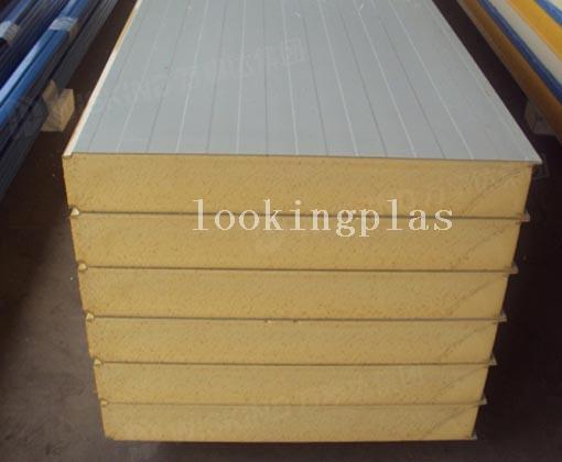 Gap plate thickness depends laminated link plates, the expansion ratio and weight depends on the recipe sheet; sandwich material cured after forming the production line through both sides of the trimmer trimming after being automatic tracking cutter cut to needed the desired length of the product, packaging and storage.