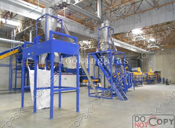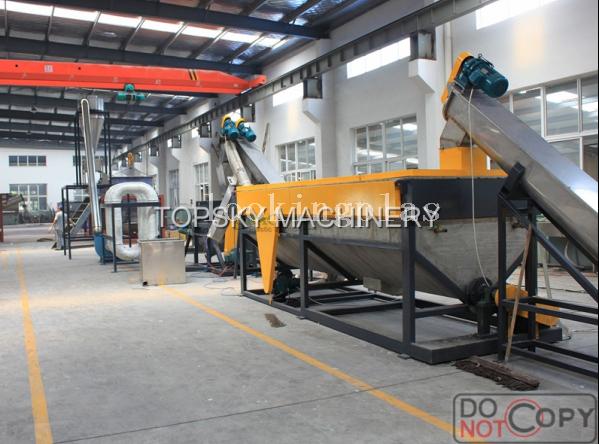 This line used to wash and clean the recycled PET bottles, such as the mineral water bottles, pesi bottles, oil bottles, etc. The clean flakes can be used to produce the polyester staple fiber, PET strap band, granules, PET transparent film and sheets, etc. The top class flakes can be used to mould the bottles again. We had exported this line to Russia, Ukraine, Romania, Egypt, Malayia, Uzbekistan, etc.