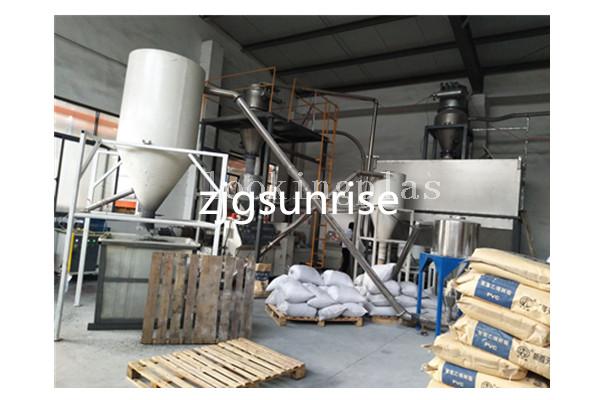 This system is designed for more than one extruder designed automatic feeding, material storage and transportation are conducted in the airtight container and stainless steel pipe. And took some dust control measures, effectively preventing the dust pollution. Keep the workshop clean environment. Control system adopts imported PLC control, the main electrical parts were moved with imported famous brand product guarantee long-term, reliable, and the whole system run efficiently. Control system can automatic or semi-automatic complete the whole loading process, the mimic panel can be light real-time display the running state of the different parts of the system, and can to flash alarm failure part, to the operator attention.