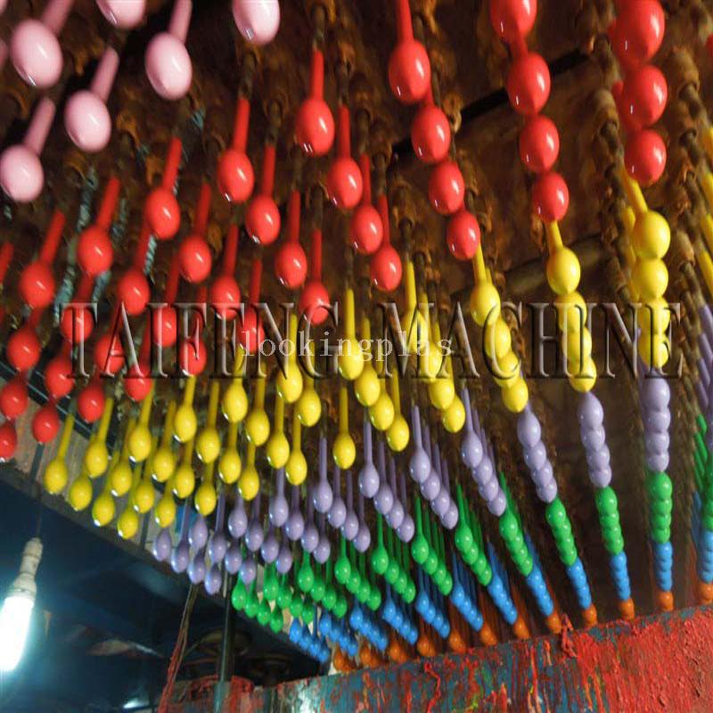 1.Natural latex toy balloon production line adopts continuous production method and direct leaching method, uniform film-forming, beautiful in color, a variety of specifications and different ball can be producted at the same time,also can produce a variety of specifications color balloon; Production line length have 35 meters,  60 meters, 80 meters and so on a variety of specifications, can automatic demoulding, high output, the product without the hanging point.