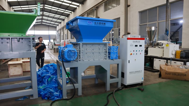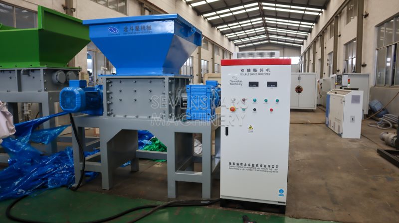 The machine is controlled by PLC system, the blade can be rotated in opposite direction, and also will close automatically if something unexpected happen, with very high safety service We have many model of single and double shaft shrdder for film,jumbo bags and carton paper GL400,GL600,GL800,GL1000,GL1200,GL1400 , GL1600 and GL1800 with high capacity.