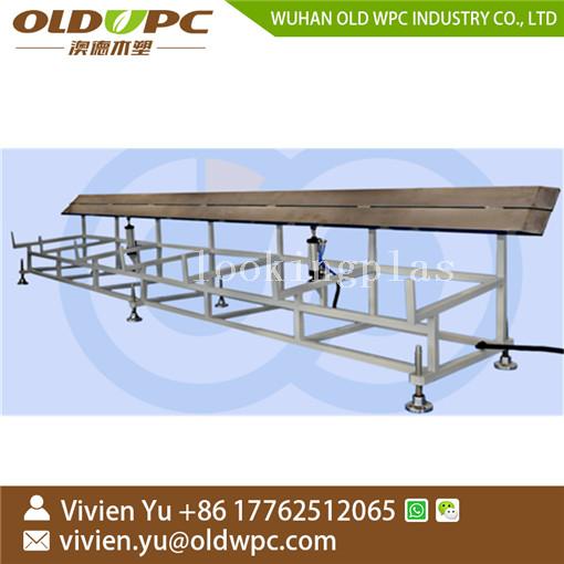 PVC powder + additive → mixing → spring feeding → twin screw extruder → mould and calibrator → vacuum forming machine → hauloff machine → cutting machine → discharging rack\