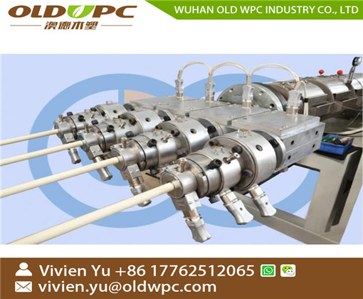 PVC four pipes (4 in 1) extrusion line is made of a 65/132 conical twin screw extruder, one set of 4 in 1 mould, one set of calibration table , haul-off & cutting combination (dust free) and stacker.The diameter of the best production tube is from16mm to 32mm.Main features: high capacity, low power consumption, low water gas consumption, low occupation, low noise, low dust, etc.