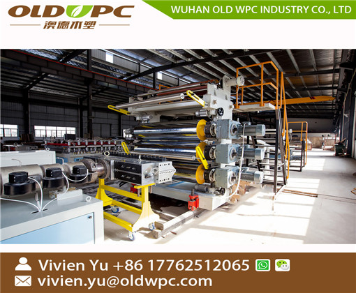 This production line consists of special double-screw extruder, mold and auxiliary machines, our company will offer formulation and full sets of technology of the complete processes. The production line has the advantages of large output, stable extrusion, high foamed ratio; the product is of smooth surface, anti-wear, etc. Combined with printing, lamination and hot-pressing equipments, it can produce various kinds of simulated wood products which have wide application.