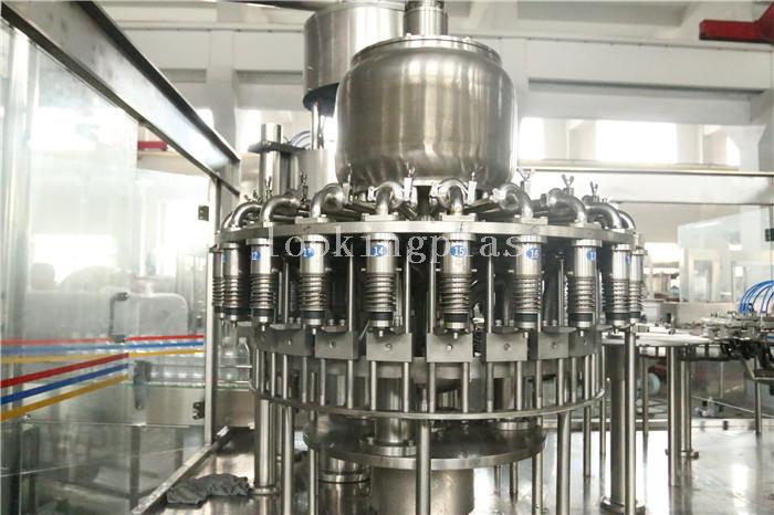 4.The machine is adopt block bottle-neck hanging work state design,and be adopt filling valve rise-drop design; It's be satisfy for 95°C hereinafter hot filling technology demand; It's adpot person-machine interface touch-screen, PLC,transducer etc advanced control technology.