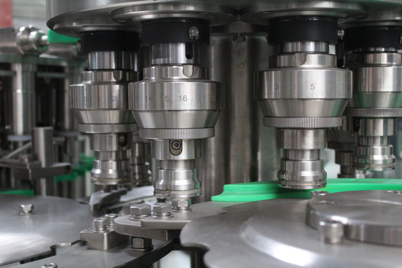 PET bottles enter the machine by distributing bottle star wheel, and making the bottle mouth adown with clamp pincers and overturning device by grip the bottles mouth. After sanitary water rinse and drain, automatically turn to the bottle up, bottle after a star wheel conveyor to the filling machine. Mainly parts of equipment structure, washing media material, external protect frame are high-quality stainless steel, open-gear transmission.