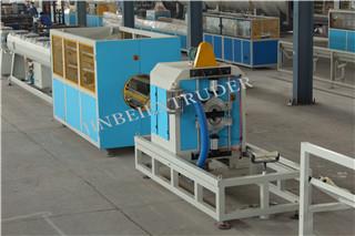PP/PE Production Line is mainly used in the production of agricultural drainage, water supply and drainage, and cable laying,etc. The unit consists of conical double/ parallel double extruder, mold, vacuum forming tank, multi-claw haul-off machine, planetary(chipless) cutting machine, stacker and so on.