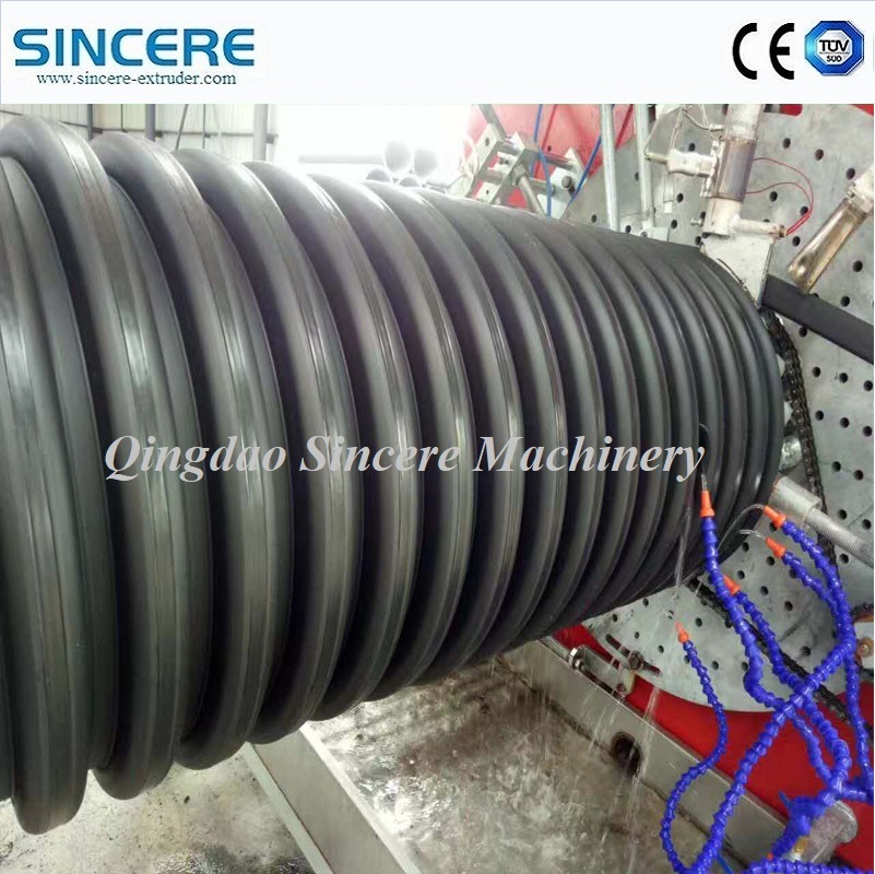 Inner ribs reinforced spiral winding corrugated pipe extrusion machine line.