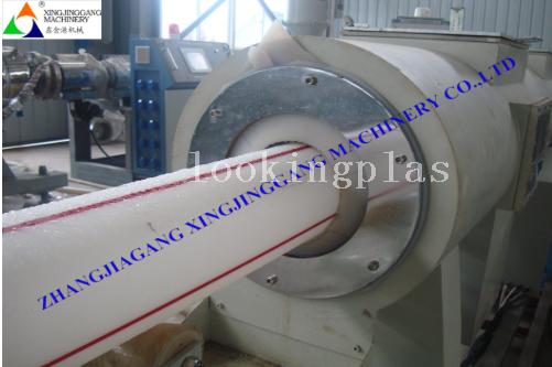 High-efficiency Single Screw Extruder →Single Screw Co-extruder →PP-R/PE-RT Pipe Mould → Vacuum Calibration Tank →Spraying Cooling Tank → Caterpillar Hauler → Cutter → Stacker