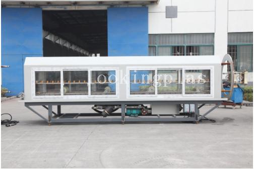 High-efficiency Single Screw Extruder →Single Screw Co-extruder →HDPE Pipe Mould → Vacuum Calibration Tank →Spraying Cooling Tank → Caterpillar Hauler → Cutter → Stacker(Winder)