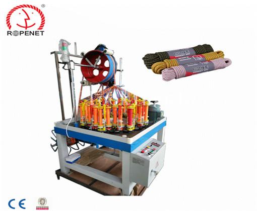 The machine is suitable to produce different size and material of 8, 16, 24, 32, 48 strands braided rope, which is widely used in shoelace,fishing line, sports rope, bungee rope, skipping rope, climbing rope,pet rope etc. The machine is equipped with yarn break stop automatically device and frequency converter. The machine has the characteristics of high efficiency, safety and easy operation.
