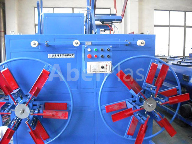 The machine is mainly used in coiling and packing of aluminum-plastic compound pipe,cross-linking compound pipe and other plastic soft pipes.It adopts automatically coil,adjusting coil speed and coil method.It has two disk forcontinuous coil.It adopts pneumatic method.The wheel rib of the coil up wheel adopts pneumaticopening and closing.It is equipped with aray creel stand to automatically coil displacement.It reaches coil up orderly.The machine structure is compact.Its automatization is high.Its appearance is beautiful and its operation is convenient.