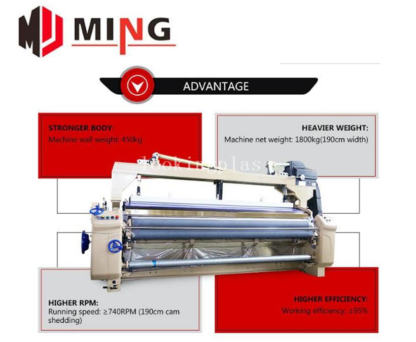 This high speed water jet loom is specially designed for high density fabric weaving, such as blackout fabric, curtain fabric, clothing, bags, shopping bags, tents, shower curtains etc.
