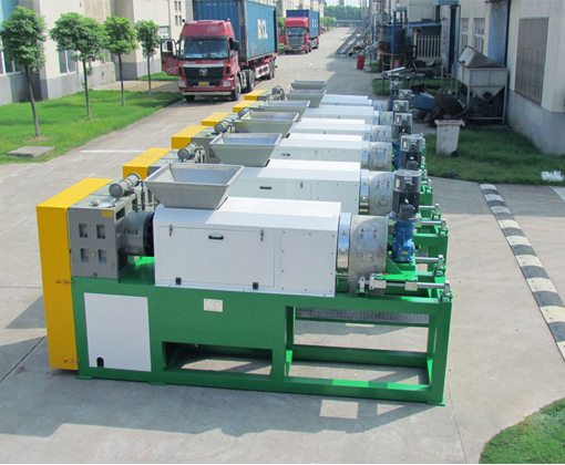 Film Squeezing& Pelletizing dryer removes the water by screw pushing and electrical magnetic heating. The screw barrel is made of material feeding barrel, compressing barrel and plasticized barrel. After feeding, squeezing ,the film will be plasticized and cut to particle by the pelletizer which is installed besides the mold.