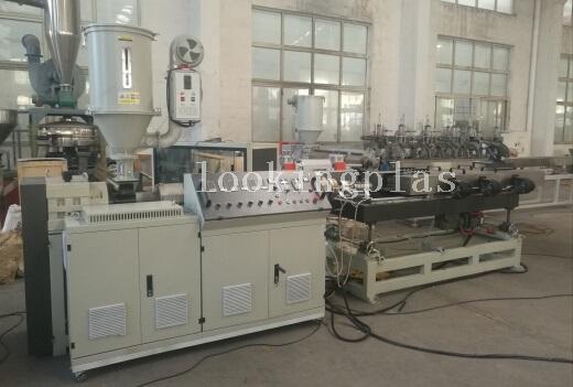 The extruder adopt high efficient single screw extruder. If the client adopt PVC powder as material, we will suggest double screw extruder. With new design of cooling system, the max production speed could be around 12meter/min.
