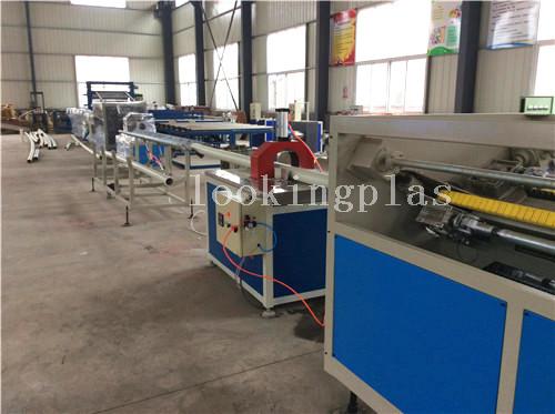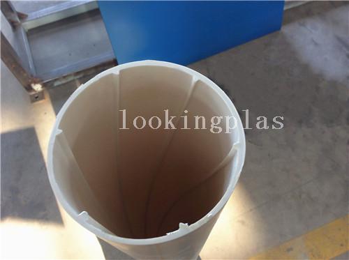Part (2), extrusion machine: this machine is equipped with quantitative loading equipment, make out in and add the shoes to match, to ensure that products stable extrusion. Due to the characteristics of the conical screw, charging period has larger diameter, the material of the heat transfer area and the shear velocity is large, is advantageous to the material plasticizing, metering section of the screw diameter is small, reduces the heat transfer area and the shear rate of melt, can make the melt extrusion under low temperature. Screw within the barrel rotates, the plasticizing PVC mixture into the nose, so as to achieve compaction, melting and mixing homogenization; And achieve the purpose of the exhaust, dehydration. Feeding device and the screw driving device adopts frequency control of motor speed, which can realize synchronous speed.