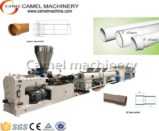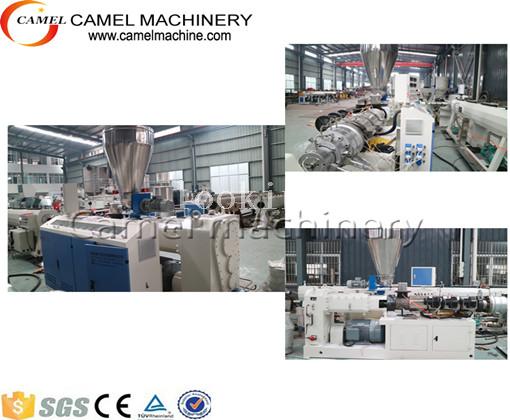 The standard PVC pipe extrusion machine include: material feeder, SJSZ series conic twin screw