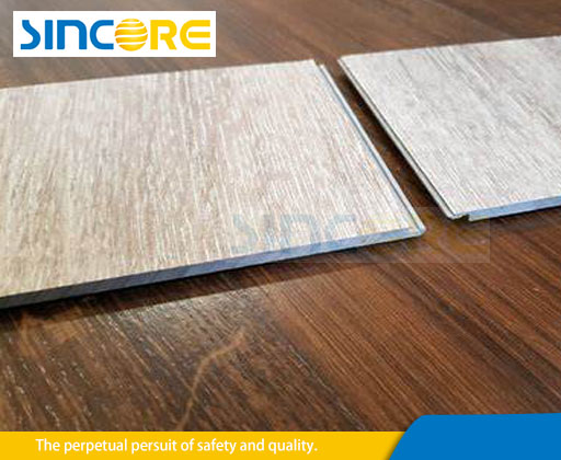 SPC基层+装饰层+耐磨层在线一步法挤出,后续上UV层,增加其耐磨系数及光洁度。