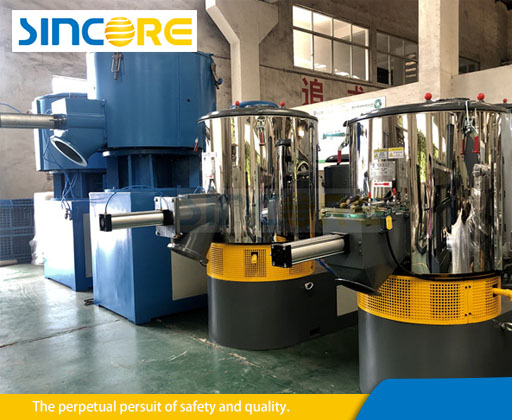 It is suitable for material transportation, mix, drying and color and it is the ideal choice for pipe or profile manufacturers. The cover adopts double seals. The cover of the hot mixer could be opened pneumatically. And the cover of the cold mixer could be opened both pneumatically and manually. The electric control system is controlled by imported meters and controlling components, which realize automatic control. It is equipped with pulse dust remove device. The blade has passed the static-dynamic balancing test. Feeder could be chose according to the customers’ requirement.