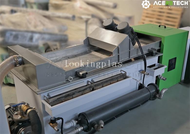 Plastic materials such as film, filament, raffia, bags, non-woven are conveyed into the compactor by belt conveyor/ Hauling roller. Speed adjusted by inverter.