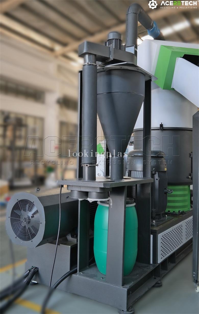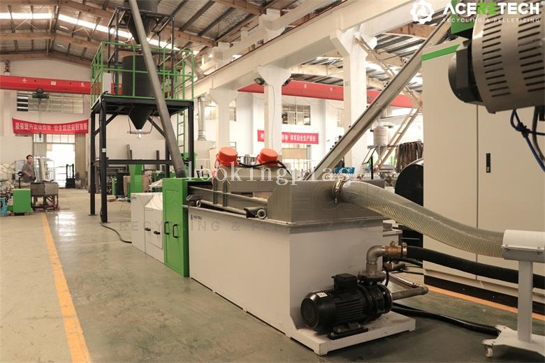 500 kg/h HDPE plastic bottle barrel flakes pelleting granulating machine with water ring die face cutting