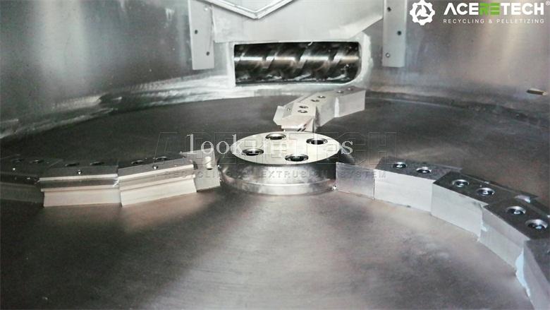 Die: Cutting blades' speed is automatically adjusted according to melt pressure on the die to ensure even granules. Cutting blades are pushed and fit completely to the die Pneumatically.