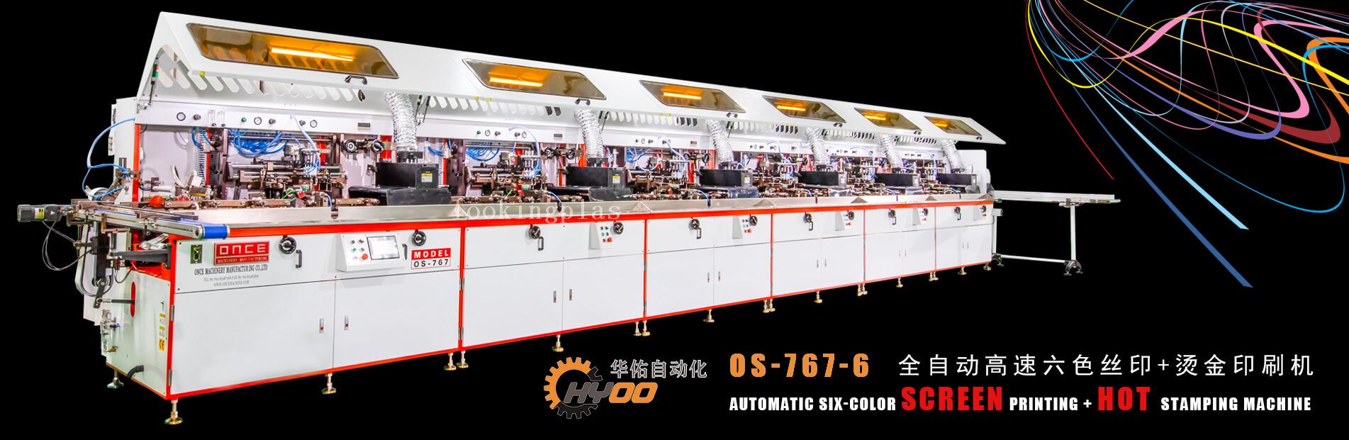 Typical Features of Six Color Automatic UV Silk Screen Cylindrical and Hot Stamping Machine HY-767-6