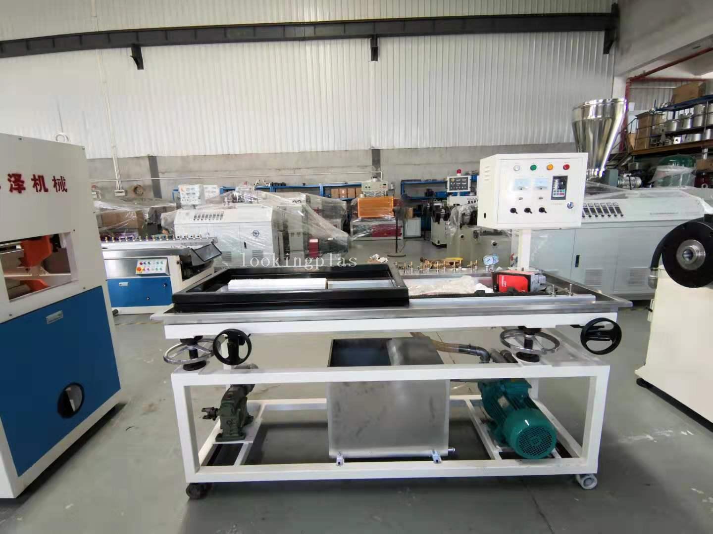 1. The extrusion line is mainly used to produce PVC ceiling panel. The width range is from 150mm to 600mm. It consists of conical twin screw extruder, vacuum calibration table, caterpillar haul off unit, rolling blade cutter and stacker.