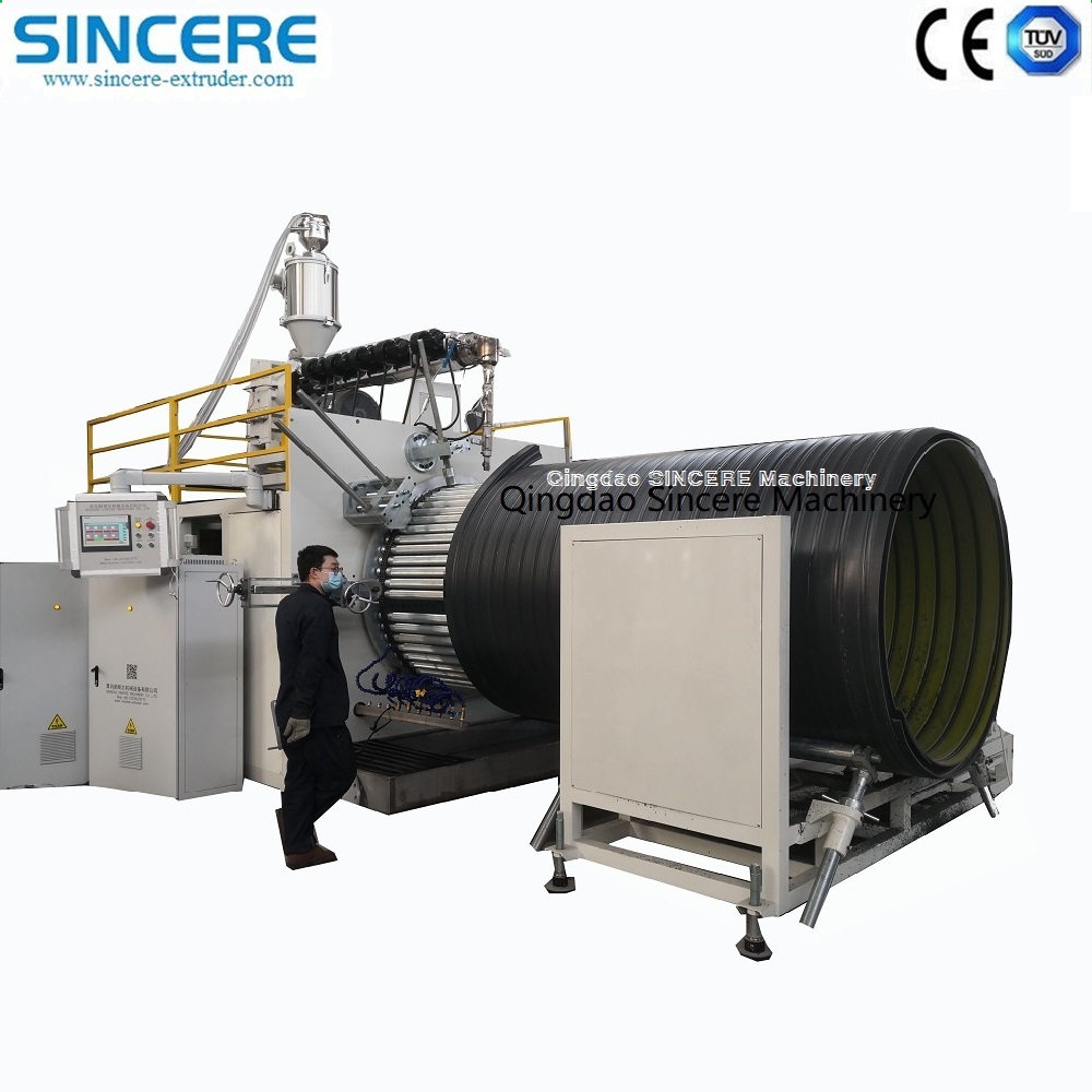 Spiral corrugated pipe extrusion production machine.