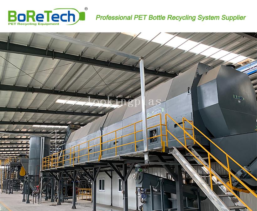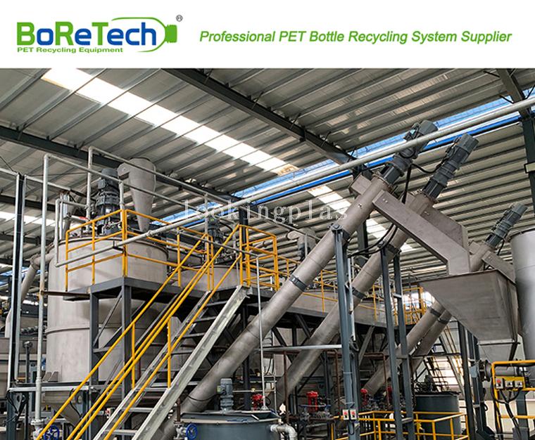 PET bottle recycling system is used to recycle from PET bottles bales to PET flakes, which with big capacity from 500 kg/h to 9000 kg/h.This process of washing and crushing is consist of different function units. The final product rPET flakes has a stable quality and various grade applications, especially for PSF ,POY manufacturer with big capacity. Recent year, BoReTech develop new technology, rPET can be achieved Bottle-to Bottle grade application with FDA approval.