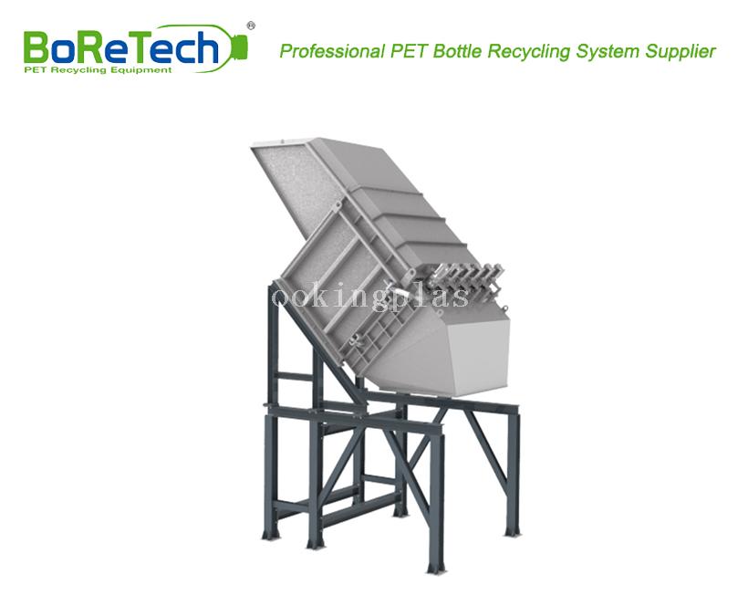 De-baling unit adopts weighing-connected feeding device by high automation technology and break up bottle bales and remove mixed metal. The special knife structure can avoid any unexpected mechanical clogging.