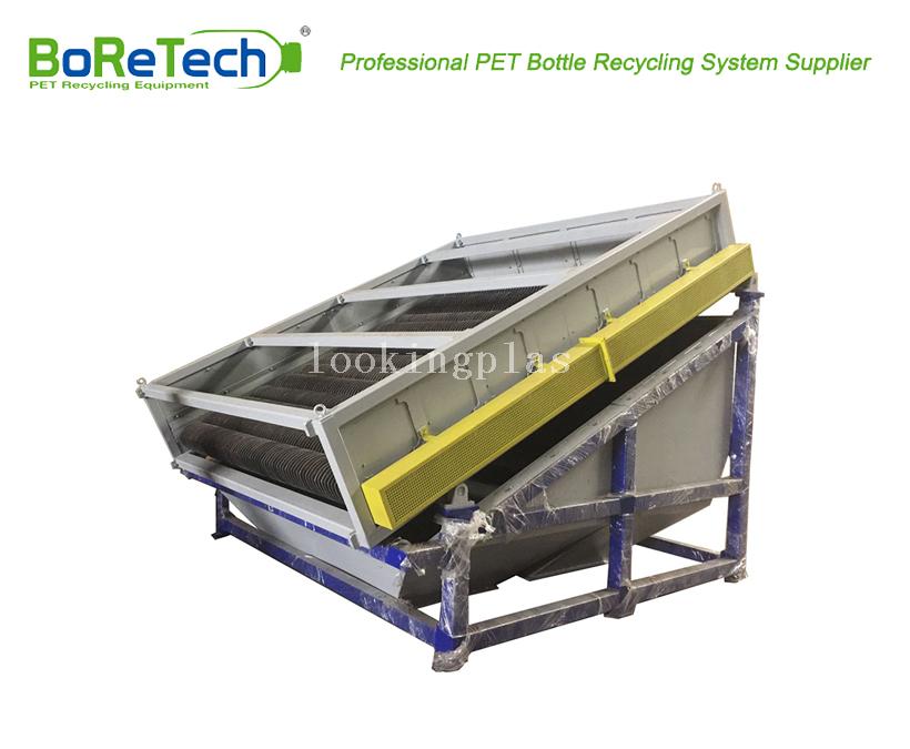 Sieving machine is used to separete solid waste such as sand, metal, small stone, labels in PET bottle recycling process. It helps the PET bottle washing by reducing equipment abrasion, material loss to enhance productivity. Flakes sieving improve the quality of final PET flakes.