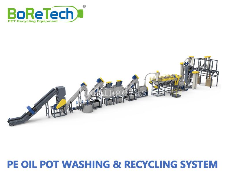 -Boretech Rigid Plastic Recycling System can process PP/HDPE hollowed plastic(≤2.5L),