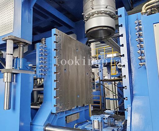 This model of IBC tank blow molding machine is fixed open-closing and accumulator die head series which adopts oblique arm double drawbar synchronous clamping mechanism, large space for mold, clamping stable, durable mold platen, mold clamping by oil cylinder pressure directly. This machine is special for IBC drums, max 1000L, and suitable for making chemical packing drums, large size car oil tank and so on. Technical characteristics: Lock the mold by the center of the oblique arm, stable clamping force. The mold is not easy to deform. Adopt original blowing technology principle, gas volume, air pressure control stability, etc.