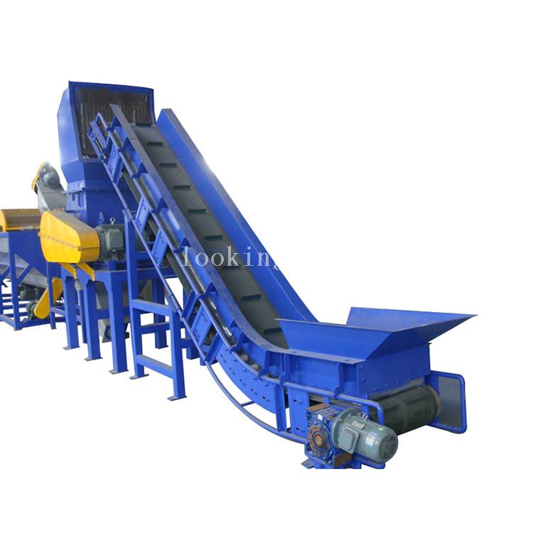 1.Belt conveyor: conveying dirty plastic film or bag into crusher. If too much scrap iron, metal detector may be needed.