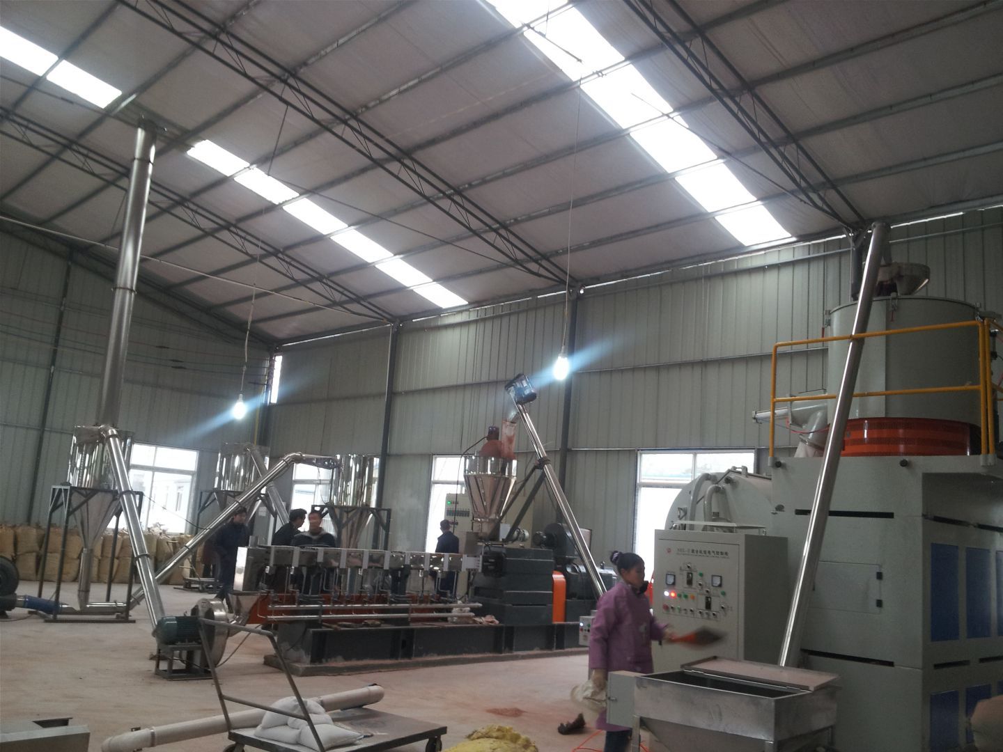 Main Feeder -> Twin Screw Extruder -> Two Stage Cyclone system -> Product silo