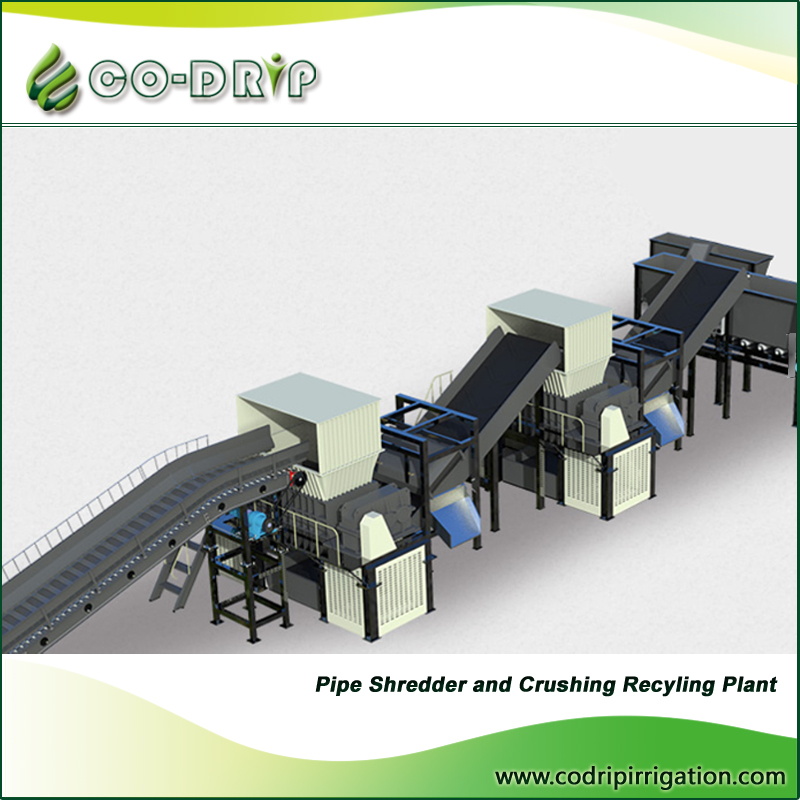 QD CO-DRIP Pipe Shredder and Crushing Recyling Plant mainly composed of shredding blade group, carrying box, box bracket, feeding system, power systemand electrical control system.