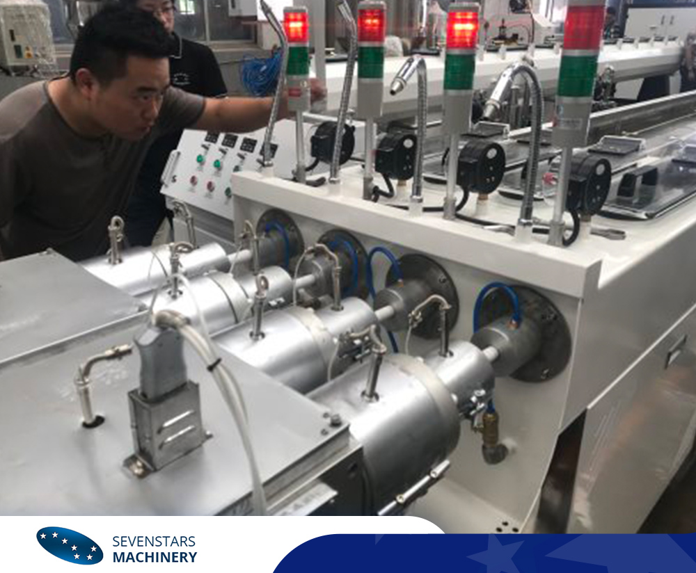 The production line is developed with the advanced technology of west Europe by our company. The main machine is SJSZ55/120 or SJSZ65/132 conical twin screw extruder is equipped with double-tube single control stainless steel spraying calibration,it avoids waste condition when one tube is adjusted and the other one is affected. The auto single-control double drawing machine and cuting machine are combined with the front double calibration technology to make operation more flexible let you enjoy economic benefit which is brought by separate-control double tube extruding.