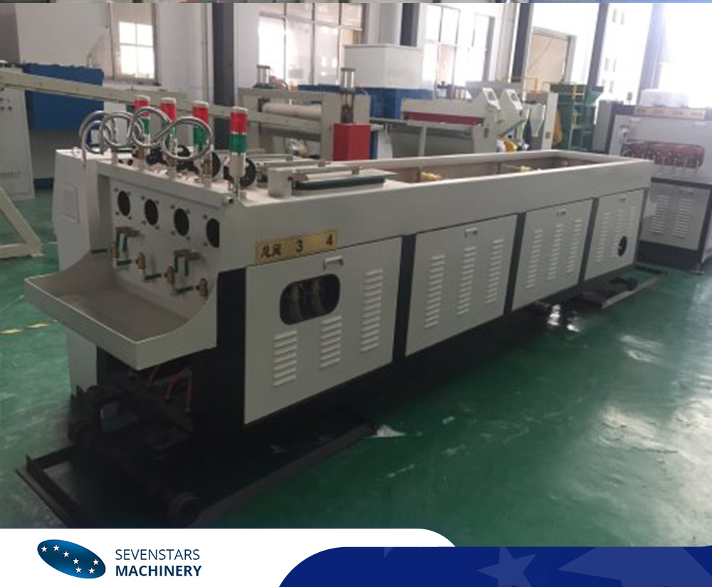 ton/per day,the production speed take 16mm as example can get more than 8-10m/min.The whole line is composed of conical twin-screw extruder 65mm,4 cavity mould,4 cavity coling calibration tank,4 station haul off,4 station cutter and 4 station tipping table.