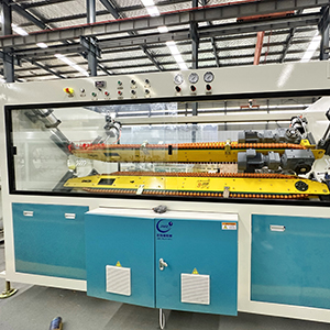 The unit is composed of single screw extruder,die,vacuum calibration box, spray tank,tractor, cutting machine, stacker etc.