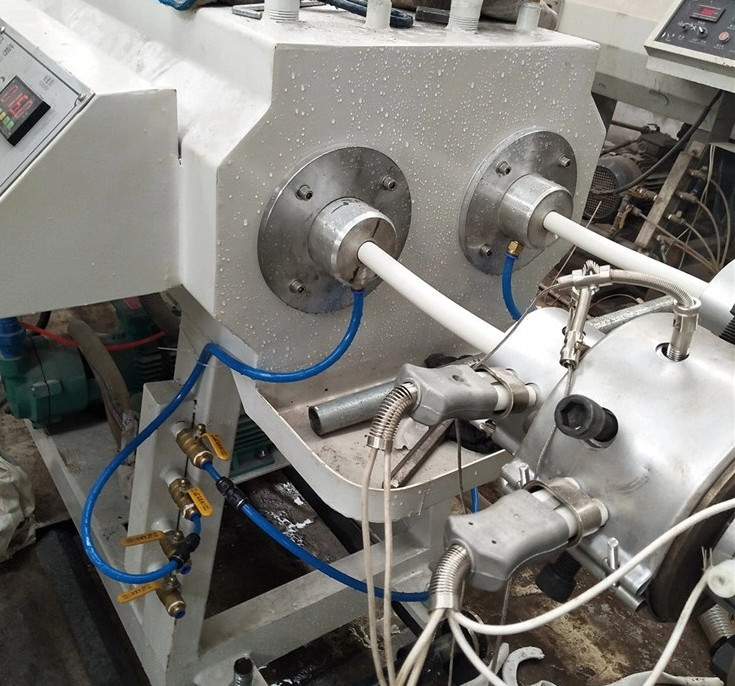 PVC double pipe production line is developed for high output of double pipe extrusion together. The machine with energy efficient conical twin-screw extruder and through special mould one-time extrusion two piece of PVC pipe, effective energy conservation, can improve the production and efficiency, save land and labor costs.The diameter of the extruded pipe is from 16-63mm. It can fully use the extruding capacity of the extruder.