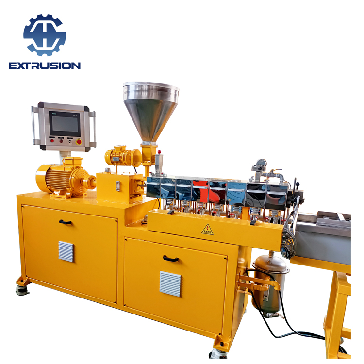 lab extruder is widely used in general plastic, engineering plastic and thermal plastic rubber, etc polymer materials such as filling, reinforcing, toughening, etc blending modification, as well as the special fiber and special adhesive, etc processing fields.