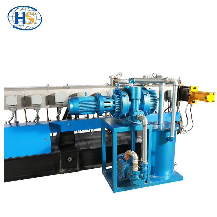 The plastic recycling twin screw extruder line with belt conveyer, crusher, extruder, auxiliary equipment. The line with characteristics of high output, low energy dissipation, labor-force saving, and high quality pellets, is an ideal equipment for plastic recycling twin screw extruder.