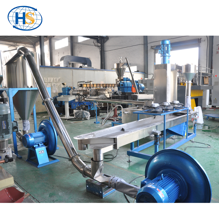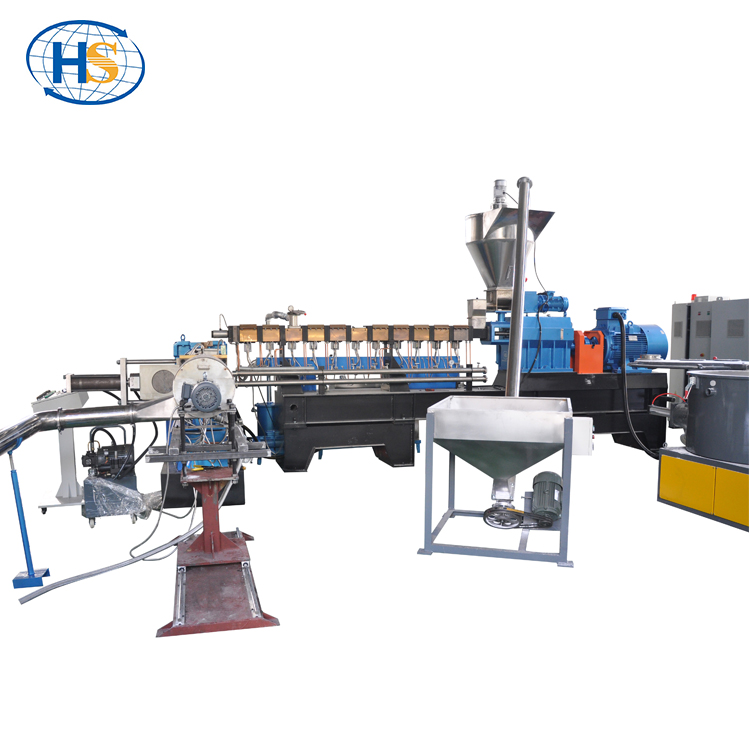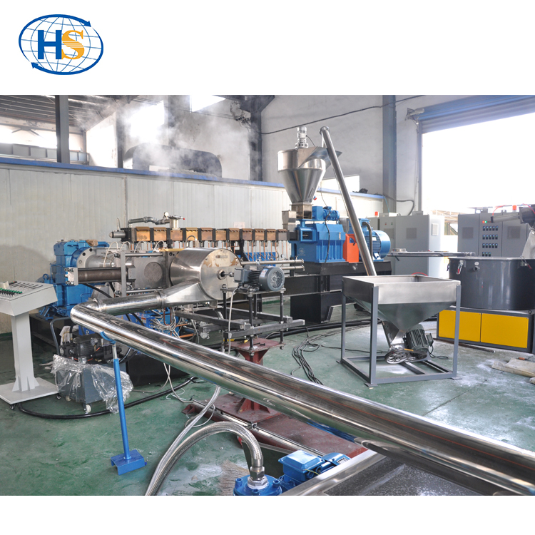 1.The first stage is twin screw extruder without die.Through the combination of barrel and screw, the extruder can exert its strong ability to make the thermo sensibility material like PVC melting, compounding,dispersing and decentralizing under the condition of no back pressure