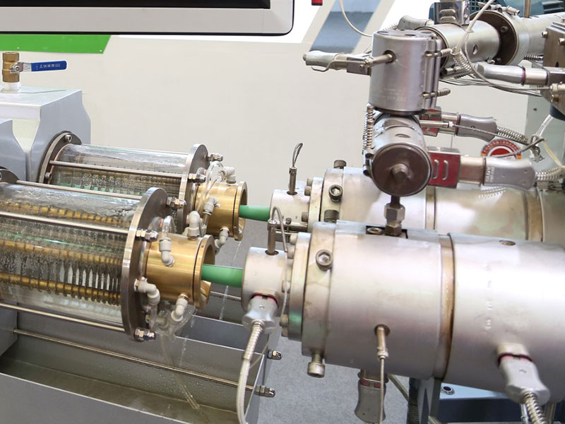 According to the characteristics of PE PE-RT and PP RM PP PB PA materials, an efficient single and double outlet pipe production line was designed. The production line adopts the high-efficiency single-screw extruder produced by our company and controlled by Siemens PLC. The whole production line is automatically controlled from the extruder to the downstream, with high productivity and stable performance.