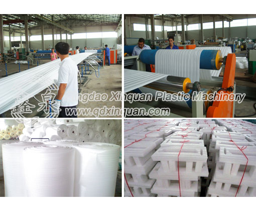 EPE foam clothe making machine use the latest technology, the product have high foaming ratio, low power consumption; the motor adopts explosion-proof machine, SIEMENS frequency inverter for stable speed regulation; Japan OMRON temperature controller for accuracy control, the whole production line is of convenient operation, automatic control, stable and reliable working.
