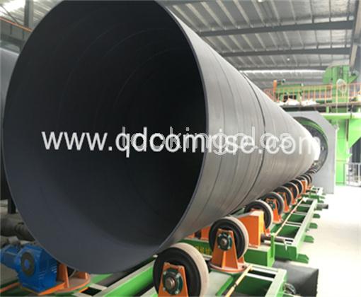 The outer wall of the steel pipe is first derusted to clean the rust on the surface of the steel pipe, and then the steel pipe is transported to the intermediate frequency heating place for heating through a spiral conveyor line. After the steel pipe is heated, it is sprayed with epoxy powder, wrapped with adhesive and polyethylene, and the wrapped steel pipe is Then cooling spray is performed to reduce the temperature, and finally both ends of the steel pipe are beveled and polished.