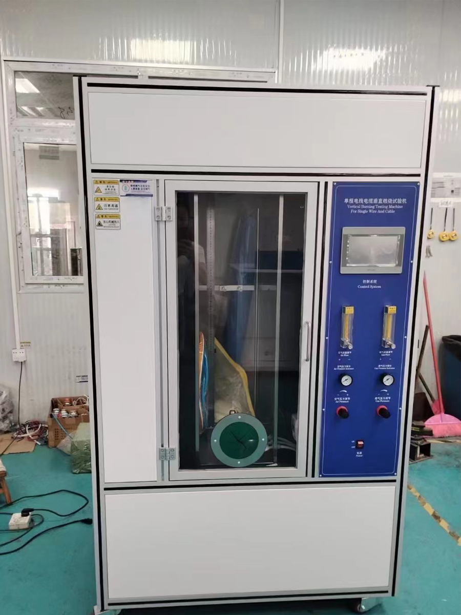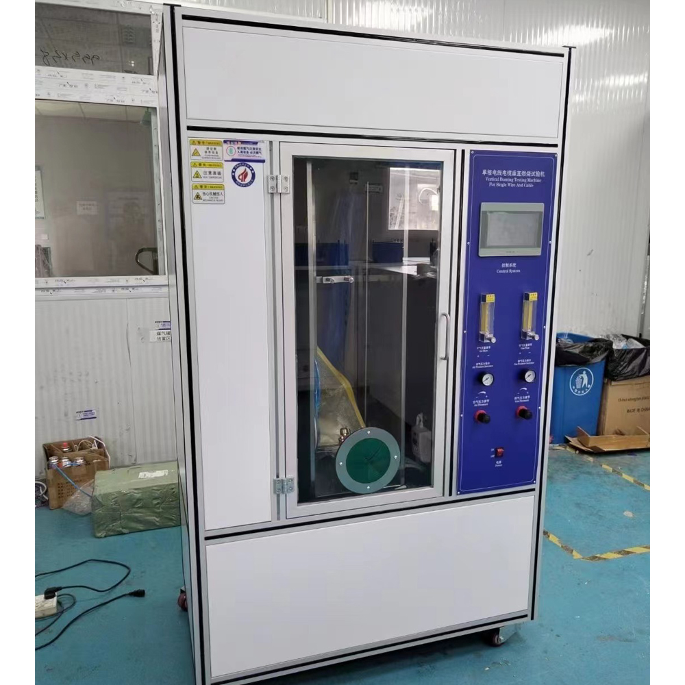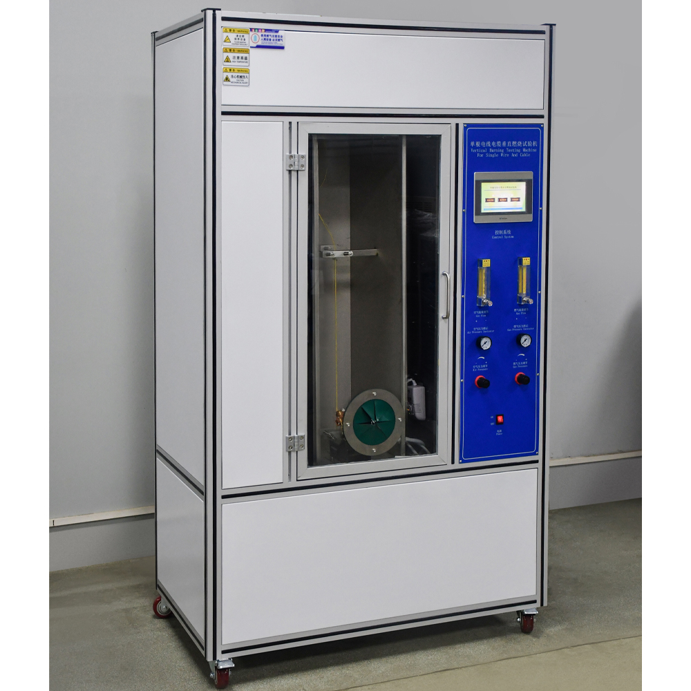 Single wire and cable vertical combustion test machine is suitable for testing the vertical combustion non-spread performance of single plastic wire, control wire, cross-linked, elevator, marine, mining cables, etc. It can also be used for vertical burning test of