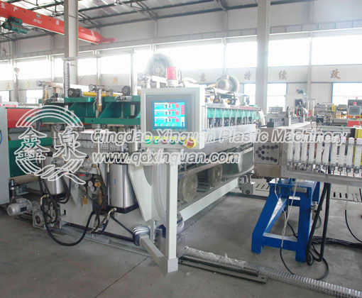 This production line is used to produce the PP hollow grid sheet line. PP finished sheet width 1220-2800mm, thickness: 2-14mm.