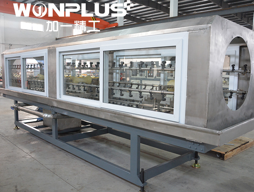 PE large diameter pipe production line includes 110-315mm, 315-630mm, 630-1200mm and 800-1600mm pipe production lines, which are characterized by high productivity, high efficiency and high automation. The line can handle all kinds of raw materials, including PE, PPR, HDPE, LDPE, PP, PPR and so on.The PE/PPR pipe extrusion line can be used to produce agricultural water supply and drainage pipes, building water supply and drainage pipes, heating and air transportation pipes etc.